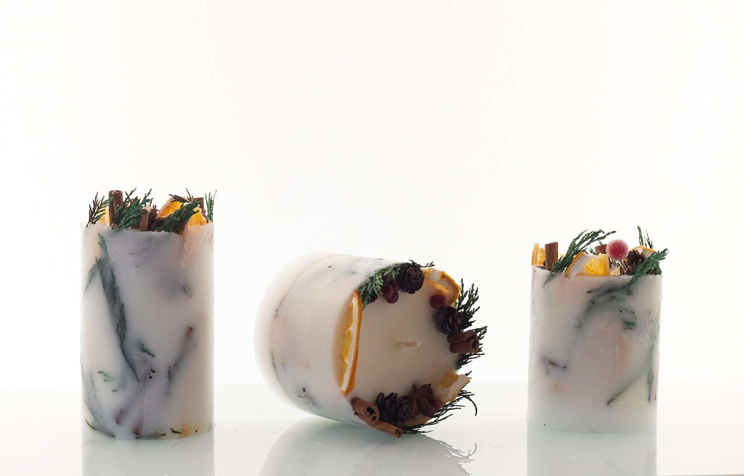 Λουλούδια φρούτα και μπαχαρικά, εσωτερικά ή εξωτερικά, δίνουν ένα ξεχωριστό τόνο, όλες τις εποχές του χρόνου.Ύψος Kεριών: 9cm | 14cm | 20cm